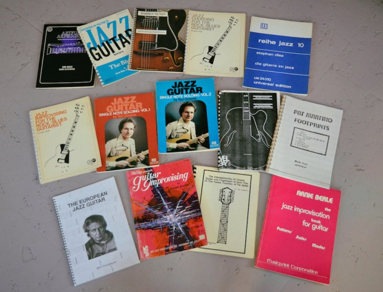 En dan komt iemand ineens aanzetten met een stapel oude lesboeken van niet de minsten: Wim Overgaauw, Ted Greene, Arnie Berle en anderen.
